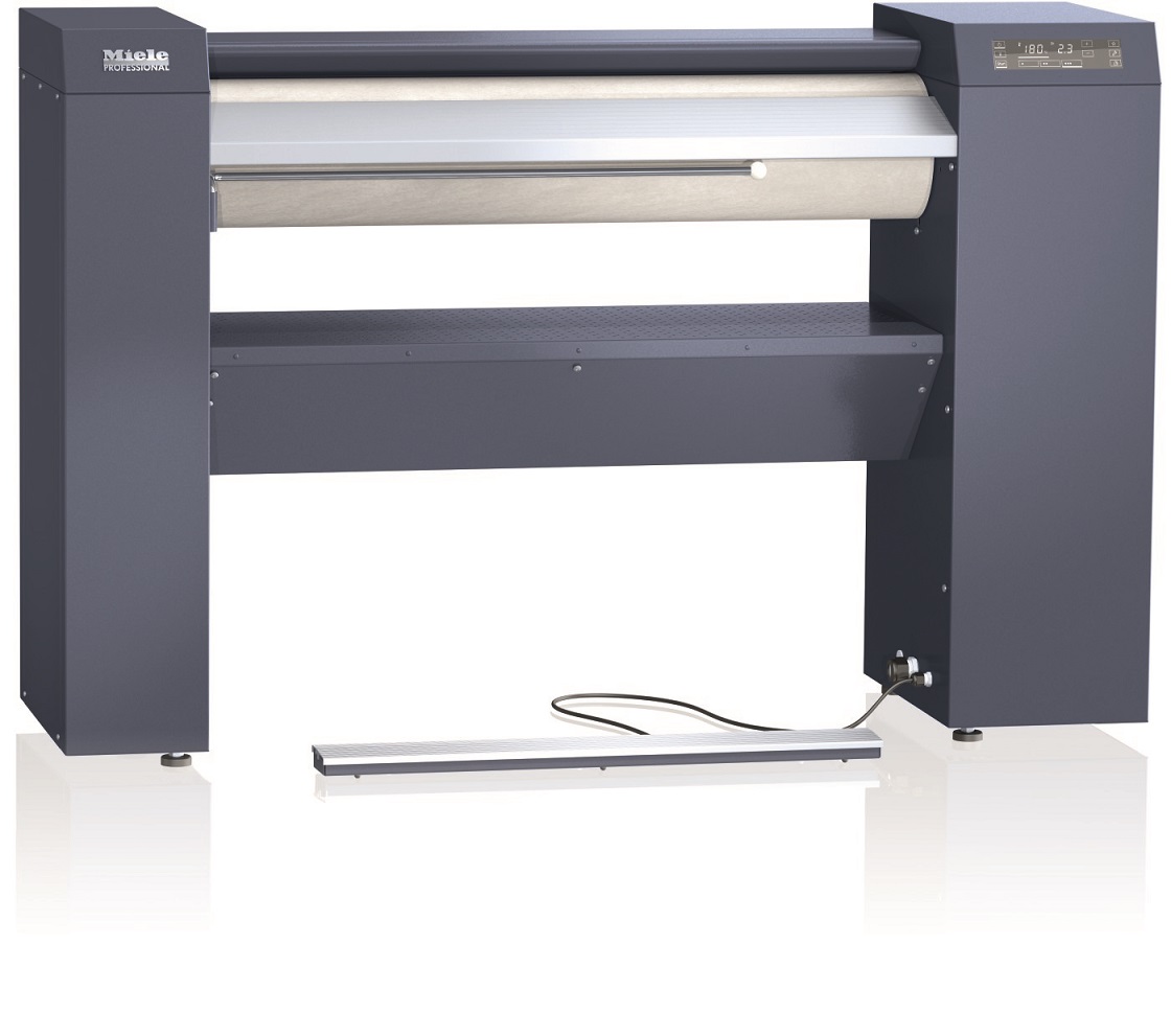 Die Gewerbemuldenmangel Miele PRI 210 verfügt über hochwertige Technik, die eine einfache und komfortable Bedienung möglich macht. Diese Industriemuldenmangel von Miele lässt sich in der Höhe anpassen und sorgt so für eine ergonomische und angenehme Körperhaltung des jeweiligen Bedieners. Ebenso sorgen die Fingerschutzleiste und die Fußschaltleiste der gewerblich nutzbaren Miele PRI 210 für größtmögliche Sicherheit. Ausgestattet ist diese Miele Industriemuldenmangel mit einem Touch Display, bei dem sich Einstellungen wie Temperatur und Drehzahl einfach und exakt vornehmen lassen.